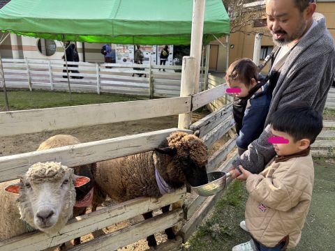 息子は勢いよくエサに突進してくる動物さんたちに若干ひるみながらも、「美味しい?美味しい?」と聞きながら、猛スピードで食べる動物さんたちを眺めていました。
