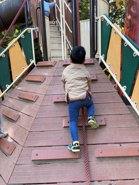 滑り台の複合遊具。校外学習の小学生も遊んでいました★