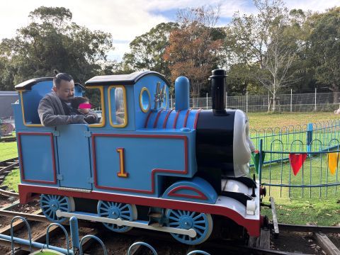 トーマスなんかもいて、わたくしと息子と娘で乗ってきました。(4人は乗れないので妻は撮影係です…)