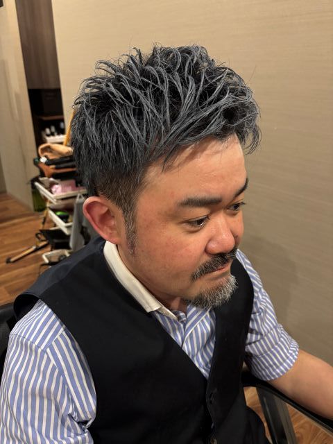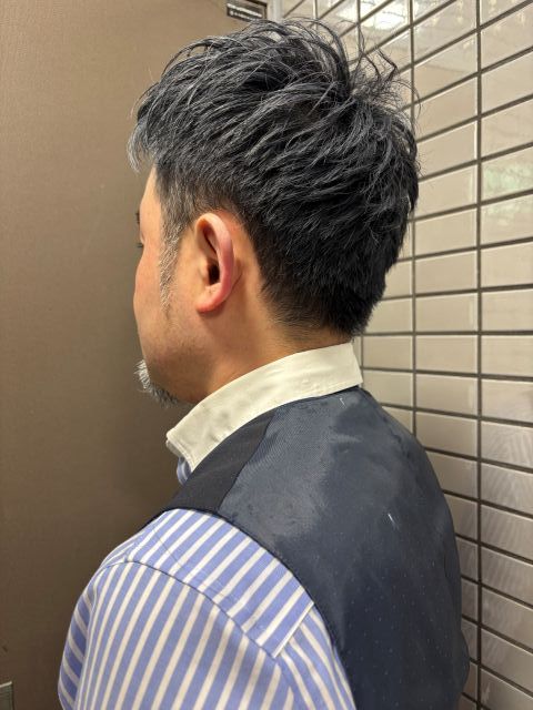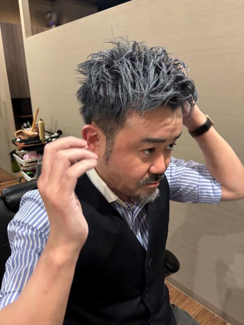 1ヵ月ほど前からでしょうか…毎日営業前にスタイリングし、シルバーヘアで営業中です。