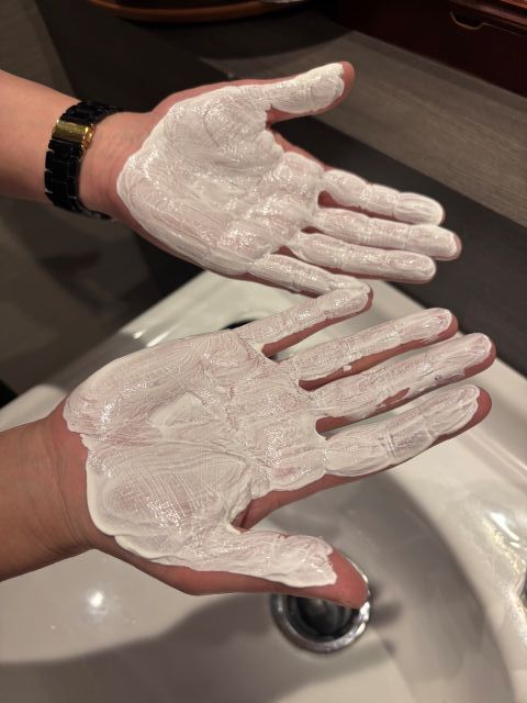 シルバーというだけあって、カラーはシルバー、適量を手に取り、薄く伸ばしてつけたい部分に馴染ませる。これだけで簡単にシルバーカラーに着色できます。