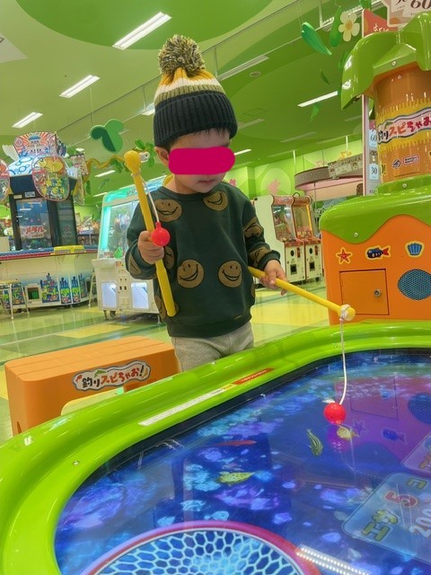おさかな大好きな息子は、併設されているゲームセンターの釣りゲームにも興味津々!!