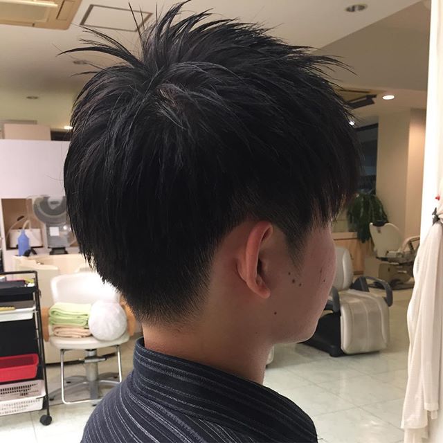 就職活動を控えている大学生。今回はスーツを着てもおかしくないようにサイドを2ブロックから繋いで襟足もややハード目に刈り上げました。